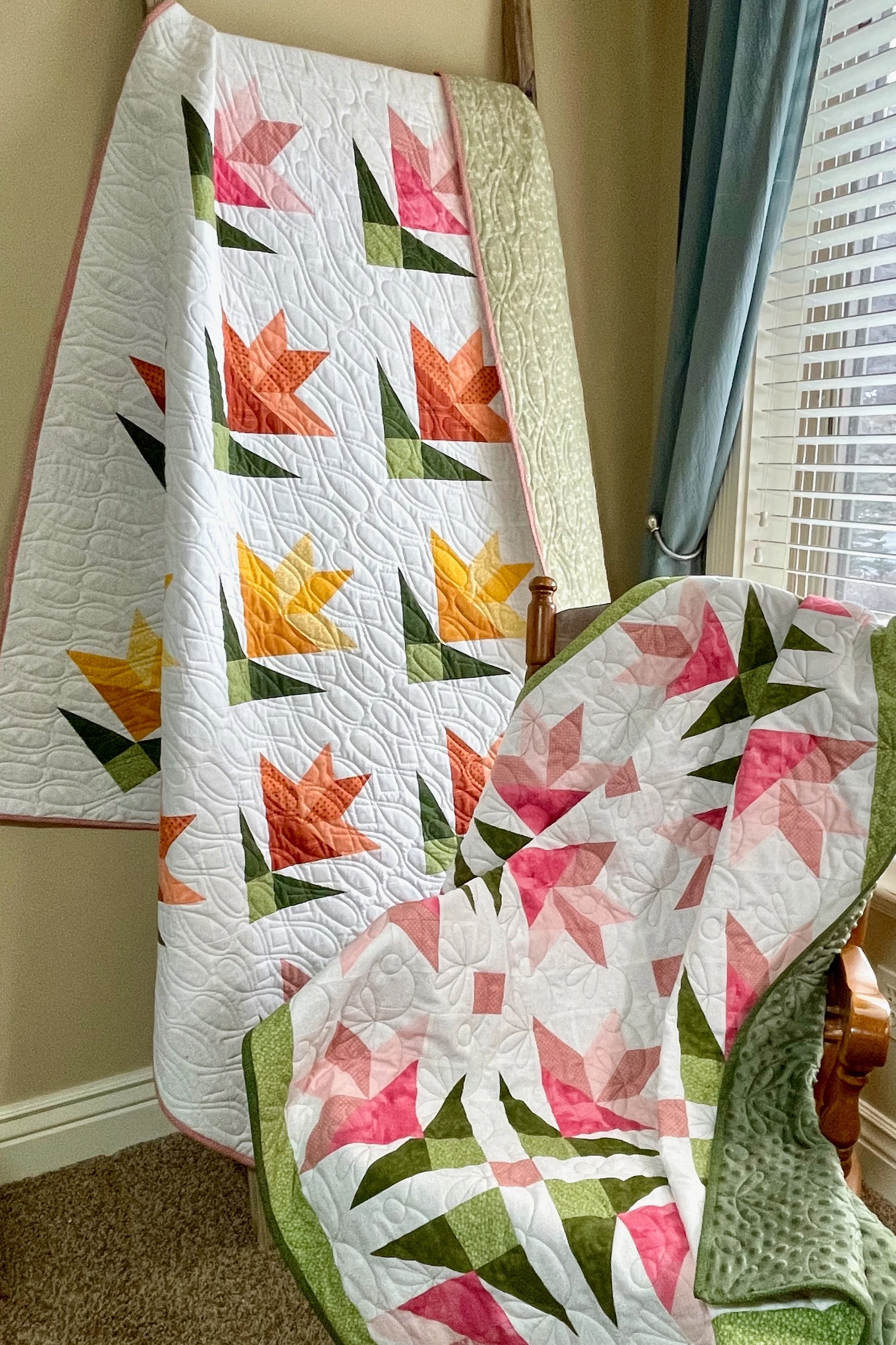 All the info on the fabrics I used for the cover quilt for the Starry Sweetheart Quilt Pattern.